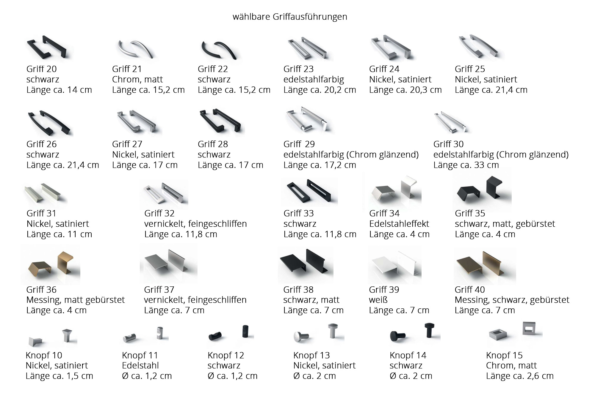 Alle Maße sind ca.-Angaben. Die Typenbildchen sind nur Skizzen und nicht maßstabsgetreu und stellen nicht die eigentliche Optik der Elemente dar. Alle Elemente ohne Deko und Beimöbel.