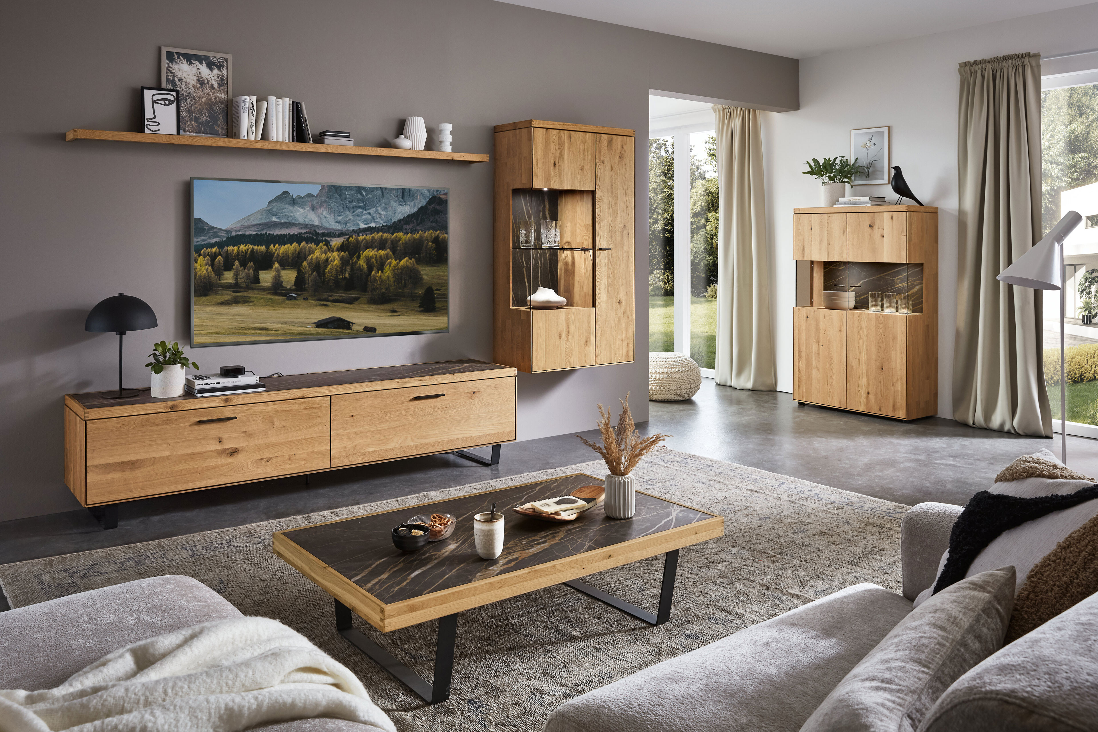 Die Lebensgeschichte eines Baumes prägt seine typischen Wuchsmerkmale, wie Zeichnung, Struktur und Farbe, denn kein Baum gleicht dem anderen. Deshalb kann es bei der Verwendung von Echtholz zu Farb- und Strukturdifferenzen bei den einzelnen Möbelstücken kommen. Bei Echtholz sprechen diese naturbedingten Eigenschaften für die Einzigartigkeit des Holzes. Dies ist kein Grund für eine Reklamation oder Beanstandung.Downloads